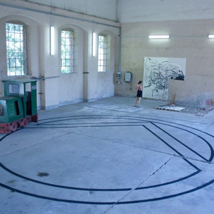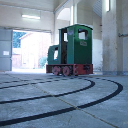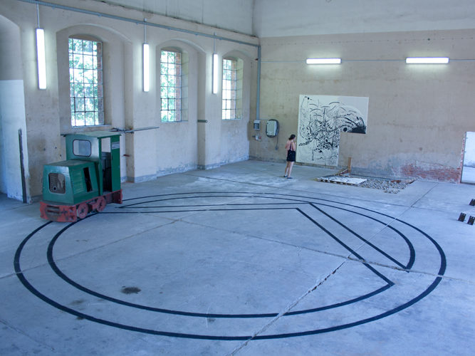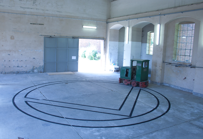 Die in den Räumen des Wasserwerks vorgefundene Kleinlokomotive bildet den Ausgangspunkt für Margarethe Masts Überlegungen zur Funktionsweise von Wasserförderung. Kohle wurde in die Anlage transportiert um als Brennstoff die Dampfkolbenpumpe anzutreiben. Die Pumpe, das Herz des städtischen Wasserkreislaufs, wird symbolisiert durch einen Kreis und zwei innerhalb liegender Linien, die sich in einem Punkt treffen und den Kreis in 3 Punkten berühren. ORBIT VIS thematisiert den Ablauf eines unermüdlichen Arbeitskreislaufs, der im Wasserwerk zum Erliegen gekommen ist und nun in der ehemaligen Maschinenhalle in einer Markierung des Bodens wieder aufgeführt wird.